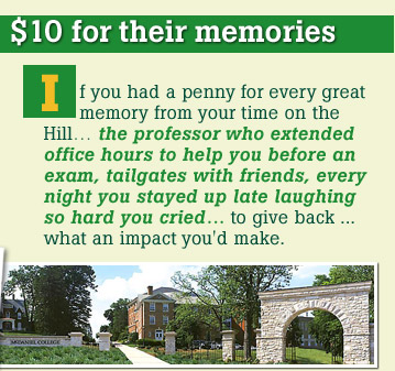 In these days of economic hardship, we don’t expect you to give back a full four-years worth of memories – today, we are asking you to give $10 to help a McDaniel student experience some of the same things you did.